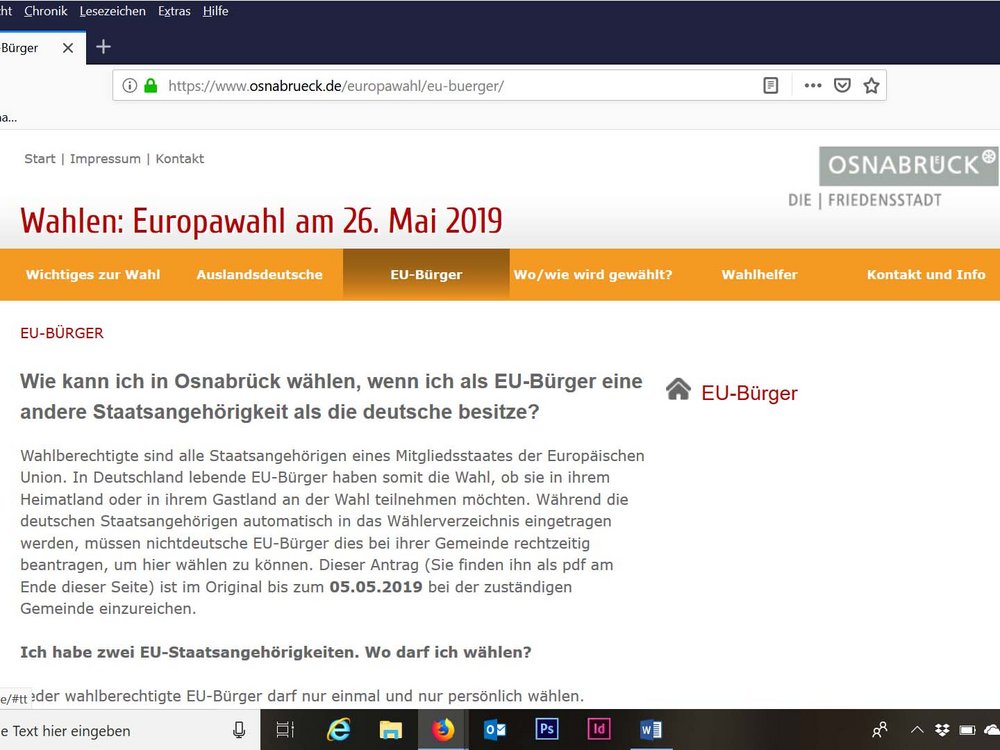 Die GRÜNEN-Ratsfraktion wünscht sich bei der anstehenden Europawahl eine höhere Wahlbeteiligung der EU-Bürger, die in Osnabrück wohnen. „EU-Ausländer können grundsätzlich auch in Osnabrück wählen. Müssen sich dafür aber rechtzeitig in das Wählerverzeichnis eintragen lassen. Das macht Aufwand. Wir wollen, dass die Stadtverwaltung diese Zielgruppe über ihr Wahlrecht und den Weg über das Verzeichnis besser und direkter informiert. Schließlich ist eine hohe Wahlbeteiligung im Interesse aller Demokraten“, erklärt der Fraktionsvorsitzende, Volker Bajus.