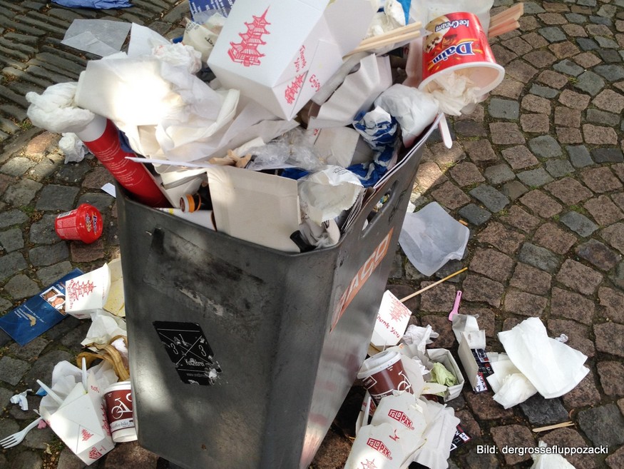 To-Go- und Picknick-Abfälle sind immer häufiger in der Natur und im öffentlichen Raum zu finden. Die Stadtreinigung kommt kaum noch nach, Straßen und Parks zu säubern. Aber auch die überwiegende Menge, die in der Müllverbrennung oder bestenfalls im Recycling endet, bedeutet angesichts existierender Mehrwegalternativen eine Vergeudung natürlicher Ressourcen. Einweggeschirr und To-Go-Verpackungen tragen laut der Gesellschaft für Verpackungsmarktforschung (GVM) inzwischen erheblich zum Abfallaufkommen in Deutschland bei. Knapp 350.000 Tonnen Abfall fielen 2017 dadurch an, seit 1994 stiegen die Abfallmengen um 44 Prozent.
