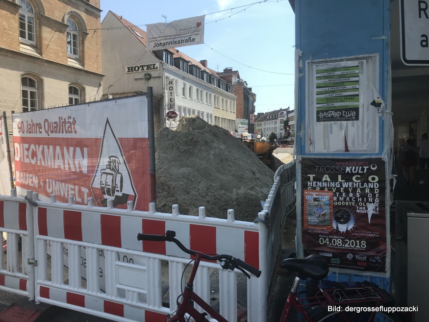 Die vordere Johannisstraße wird bis November 2018 und ab Anfang 2019 aufgrund von Umbaumaßnahmen länger gesperrt sein. Außerdem wird die Errichtung des Einkaufszentrums die Sperrung voraussichtlich weiter verlängern. Die jetzigen Busumleitungsmaßnahmen lassen erkennen, wie der zukünftige Busverkehr geleitet werden kann. Die Johannisstraße bleibt für den Radverkehr frei.