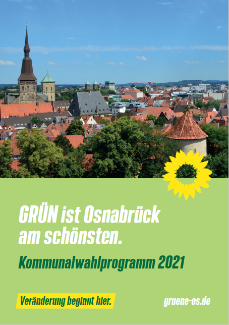Die Frage, wie wir in unserer Stadt auch in Zukunft gut leben können, leitet unser politisches Handeln. Wir haben siein den letzten Monaten mit vielen Menschen diskutiert. Ergebnis dieser Gemeinschaftsleistung ist das vorliegende Programm. Mit diesem Programm machen wir Ihnen ein Angebot. Ein Angebot für ein grünes, lebenswertes und zukunftsorientiertes Osnabrück.
