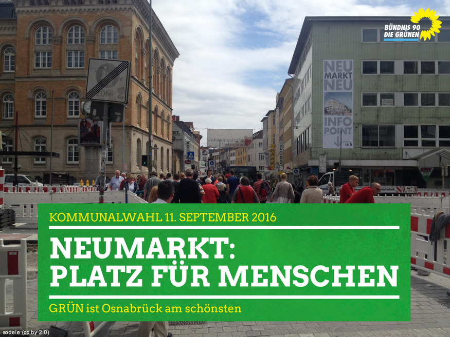 Die Umgestaltung des Neumarkts ist für uns GRÜNE ein zentrales Anliegen vorausschauender Stadtentwicklung. Wir machen den Neumarkt zu einem urbanen Platz im Zentrum von Osnabrück. Er muss vom Autoverkehr befreit werden, der ihn verstopft und für zu hohe, gesundheitsschädigende Lärm- und Schadstoffwerte verantwortlich ist. Mit Blechlawinen, abrissreifen Gebäuden und vielen Leerständen war der Neumarkt als Durchfahrtsstraße eine Barriere zwischen Fußgängerzone und Johannisstraße.