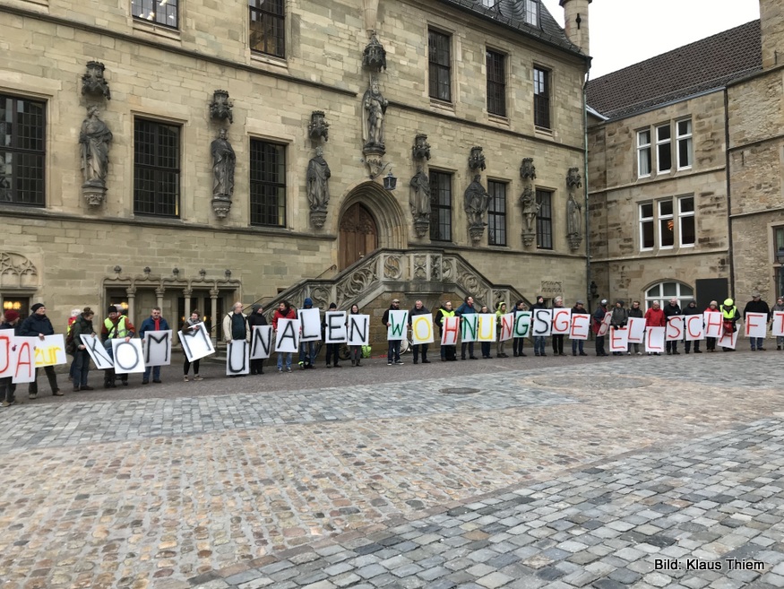 Im Falle eines Bürgerentscheids gemäß § 33 Niedersächsisches Kommunalverfassungsgesetz (NKomVG) in der Stadt Osnabrück wird die Verwaltung beauftragt, die Öffentlichkeit in geeigneter Form über Gegenstand und Verfahren des Bürgerentscheids zu informieren. Die dafür erforderlichen Mittel werden bereitgestellt.