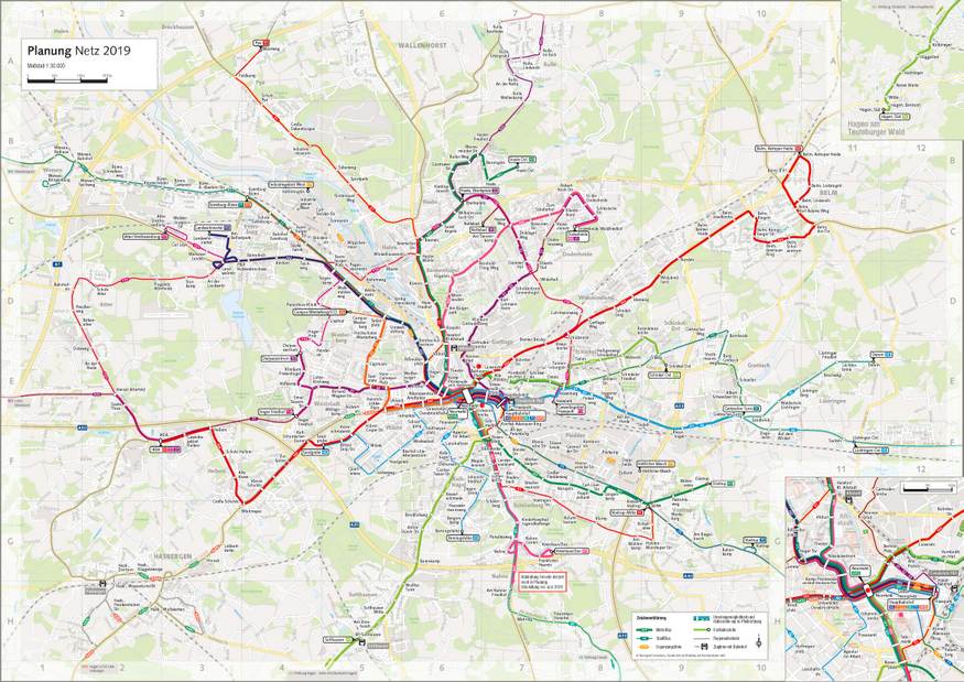 • Weiterentwicklung der ursprünglichen Tangentiallinie zu einer Ringlinie unter Einbeziehung der Bedienung der Lotter Straße sowie des Stadtteils Fledder montags bis freitags im 20-Minuten-Takt; Kosten ca. 616 T€