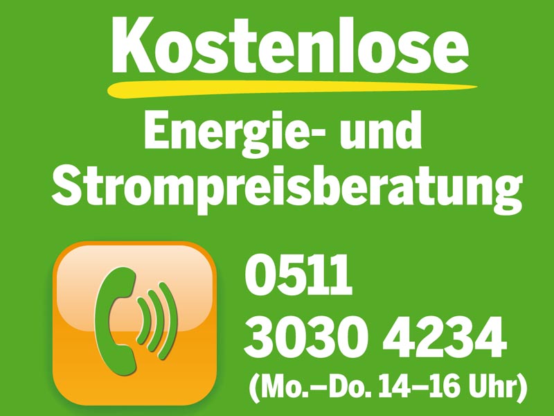 Von Montag bis Donnerstag können private Verbraucherinnen und Verbraucher unter der Telefonnummer 05 11 / 30 30-42 34 eine Beratung erhalten.