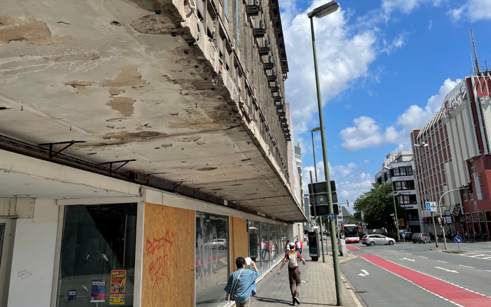 Seit einem Dreivierteljahr ist das seit Oktober 2020 leerstehende Galeria Kaufhof-Gebäude am Neumarkt aus Sicherheitsgründen ohne Fassade. Die Zukunft der Immobilie ist weiterhin ungeklärt. Bereits im Januar hatten wir die Verwaltung nach möglichen Zwischennutzungen, dem Schutz vor Vandalismus und einer ansprechenden Gestaltung der Fassade gefragt. In ihrer knappen Antwort hatte die Stadt Überlegungen für eine Zwischennutzung eine Absage erteilt. Und dabei auf die in Insolvenz geratene Privateigentümerin und erhebliche finanzielle und technische Aufwände verwiesen. Wir erneuern nun unsere Forderung, zumindest in das Erscheinungsbild der ungenutzten Immobilie zu investieren.