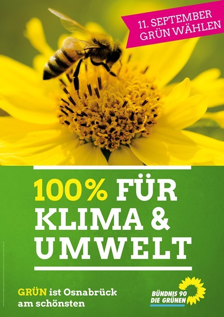 Osnabrücker*innen nehmen den Klimaschutz ernst. Auf GRÜNE Initiative hat der Stadtrat das Ziel beschlossen, bis 2050 die klimaschädlichen Emissionen um 95 % zu senken. Mit Beteiligung aller gesellschaftlichen Gruppen wird auf der Grundlage des Masterplans für 100 % Klimaschutz ein Handlungsprogramm entwickelt. Das ist ein Meilenstein, der die Stadt Osnabrück zur Vorreiterin im Klimaschutz macht. Wir werden alles daran setzen, dass dieses Programm schnellstmöglich umgesetzt und Grundlage jedes politischen Handelns wird.
