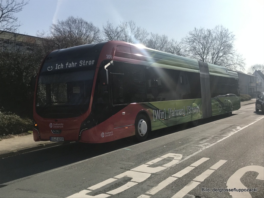 Die Osnabrücker GRÜNEN begrüßen den Start der ersten Elektrobuslinie in Osnabrück und fordern zugleich Ökostrom für den laufenden Betrieb. „Das ist der Anfang einer neuen ÖPNV-Ära in Osnabrück. 60 Jahre nach der Abschaffung der Straßenbahn stehen endlich wieder emissionsfreie Fahrzeuge zur Verfügung. Ein guter Tag für die Luft und damit für die Lebensqualität in Osnabrück“, freut sich der Fraktionsvorsitzende der GRÜNEN-Ratsfraktion, Volker Bajus.