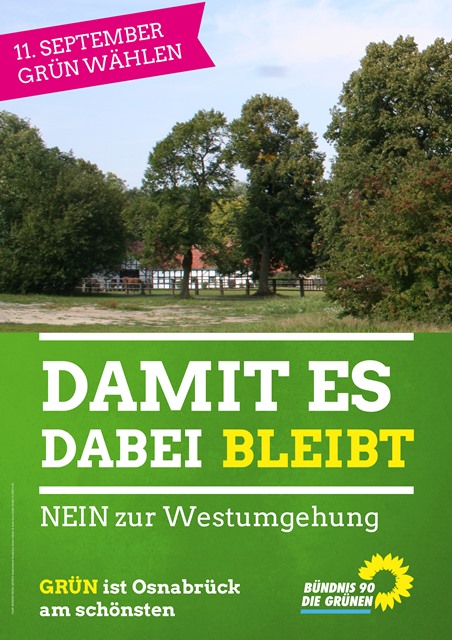 Neue Straßen schaffen neue Verkehre. Neue Straßen und Pläne von mittleren Ringen gehören eindeutig zu den Strategien der autogerechten Stadt und damit in die Geschichtsbücher. Investitionen in weitere Elektrofahrzeuge im ÖPNV und für das Car-Sharing sind deutlich besser angelegt. Mit der Entscheidung gegen die Westumgehung haben die Osnabrücker*innen gezeigt, dass sie hinter zukunftsfähiger Mobilität stehen, die nicht das Auto sondern die Menschen in den Mittelpunkt stellt. Das Nein zur Westumgehung ist nicht verhandelbar. Das Handlungskonzept, das aus dem Beteiligungsprozess zum Verkehrskonzept Westerberg entwickelt wurde, muss nun konkretisiert werden. Entlastungen lassen sich durch bauliche Maßnahmen zur Verkehrsberuhigung, zusätzliche Querungshilfen, Geschwindigkeitsüberwachungen, eine Ausweitung des ÖPNV-Angebots, bessere Radwege und ein konsequentes Mobilitätsmanagement in der Umgebung erreichen. Die geplante Erschließungsstraße des Wissenschafts- und Wohnparks von der Natruper bis zur Sedanstraße wird allerdings wieder mehr Verkehr in das Quartier ziehen. Deshalb und wegen der hohen Kosten lehnen wir sie ab.
